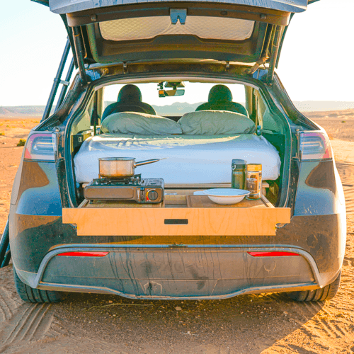 Upgrade your adventure with the large 35 liter cooling/freezer with powerful compressor that fits perfectly with our Camper Kitchen and Camper Kit for Tesla Model Y.